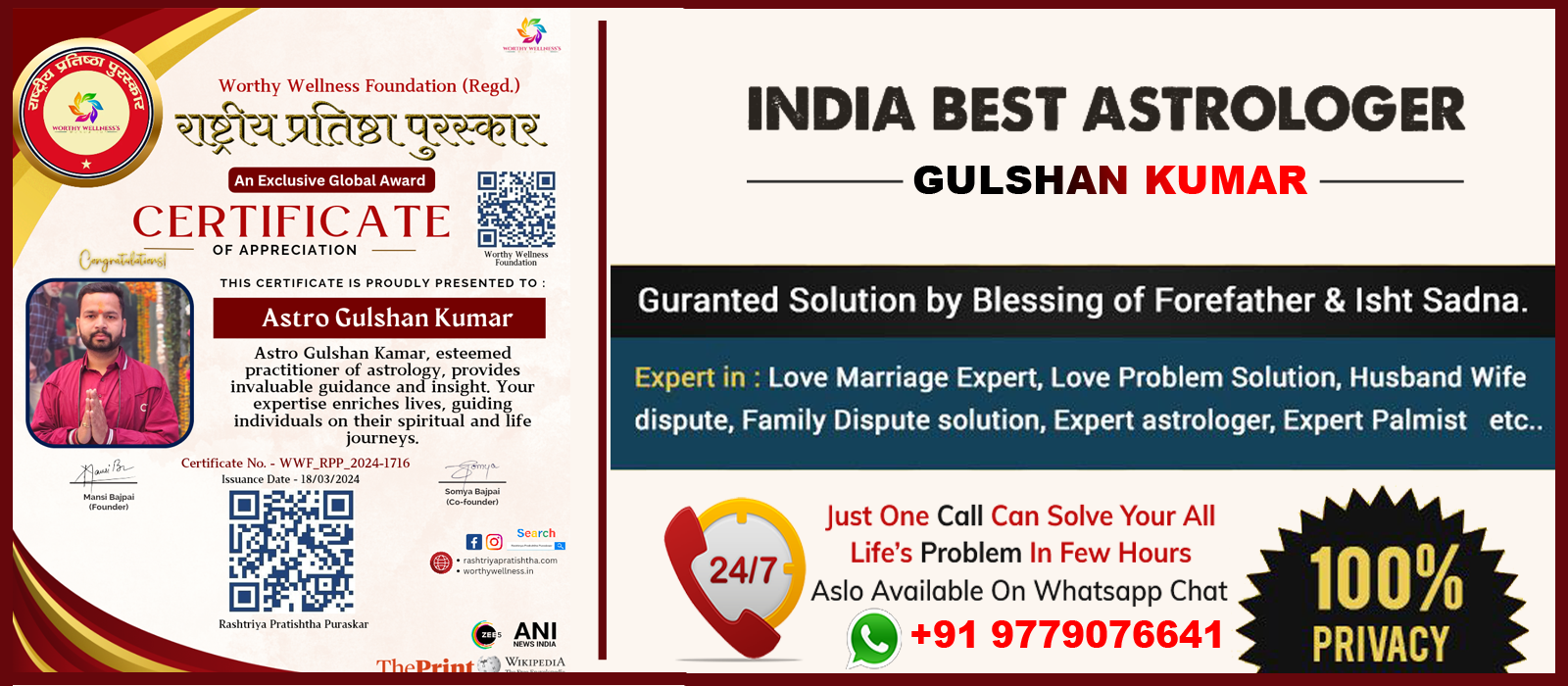 Indian Astrologer Gulshan Kumar is one of the best astrologers in the world, he has solved many cases of love back, love problems, love marriage, husband-wife disputes and many more in a short span of time. He has great experience and contribution in the astrology field and he has provided his astrology services for many years all over India as well as all over the world. He is an expert in love marriage and intercaste marriage solutions, love problem solutions, love back, family problem solutions, relationship problem solutions, business/job problem solutions, career problem solutions, divorce problem solutions, husband-wife problem solutions etc.